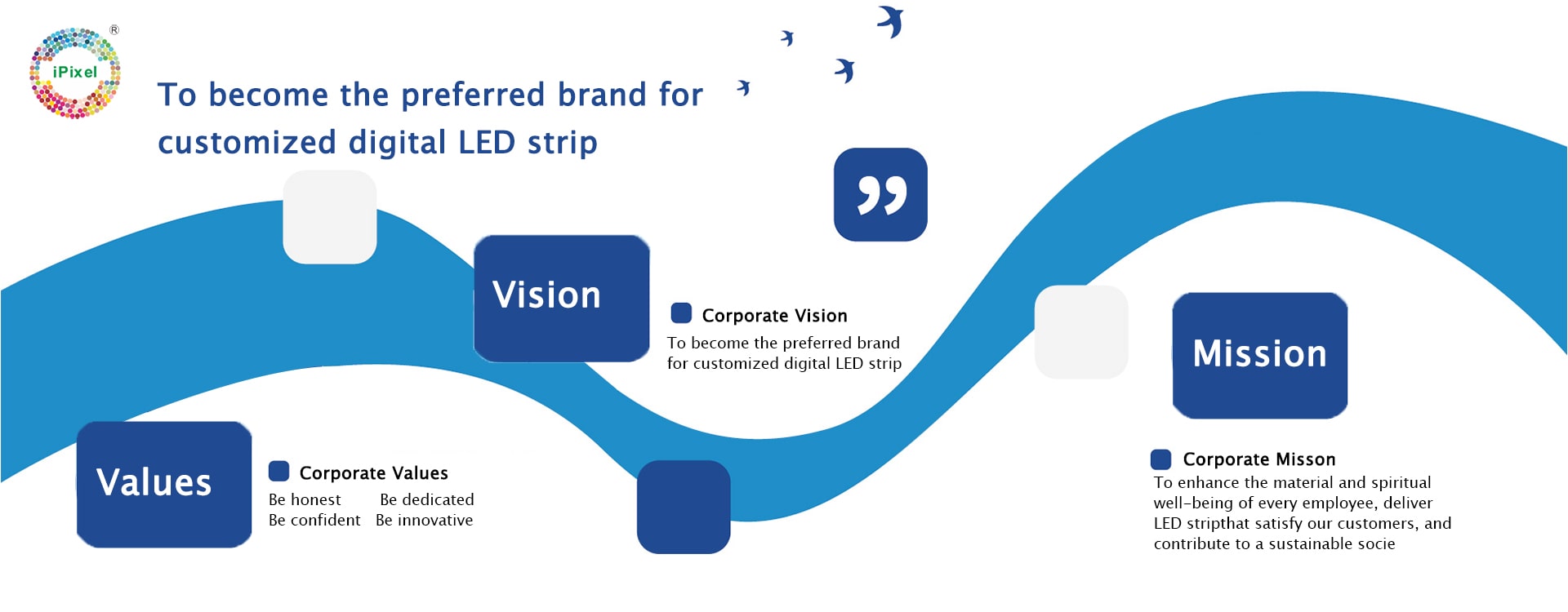 Founded in June 2015, iPixel LED Light Co., Ltd. is a professional LED product supplier integrating R&D, production, and sales. With over a 10 years of accumulated experience and technological expertise, iPixel has established two core business divisions: the LED Strip Division and the LED Signage Division, providing high-quality, customized LED solutions to customers worldwide.