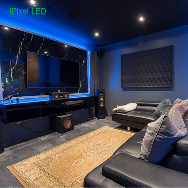 This project designed by our client from Canada. He used 30m non-waterproof WS2815 IC led strip to decorate a living room, there are 60leds per meter, and you can control each LED individually!