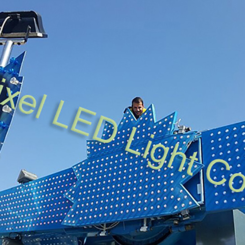 There is the project of our client, he put the 60mm 18leds pixels for his attractions.With our program and his rides. it shows very beautiful animation with only one controller. So the programmable pixels are good choice for attraction park or fairground. Let's together and make the world more colorful.