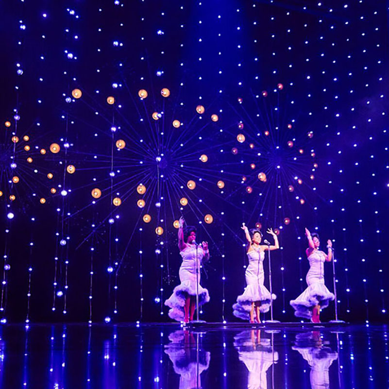 Do you know“ Dreamgirls ”? Our customer did this project by our 360° balls in Korea, this ball with DMX512 IC, DC24V, 360 view degree, clear cover(we also can provide milky white cover), customzied lengths between the balls