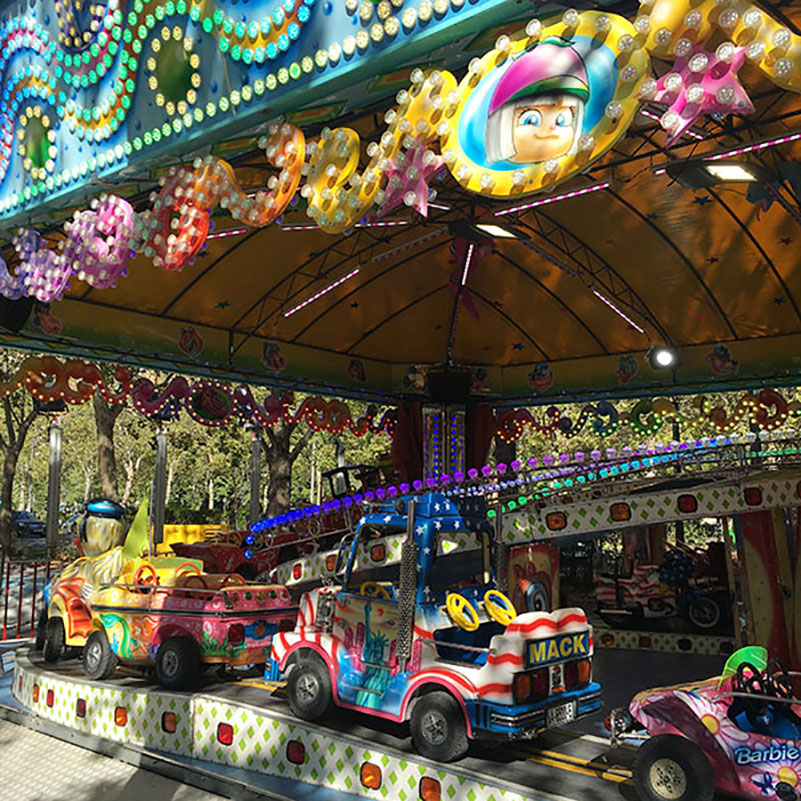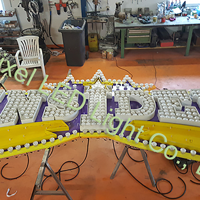It's fatastic project in Madrid, the guy used different size addressable pixel lamps for this equipment like rides , letter sign.