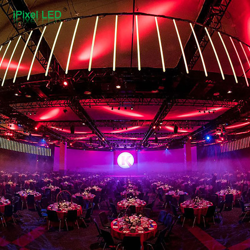 This project used our standard 3D DMX vertical tube. The installation is to hang them straight down with T-Connectors,5Pin, 2Female connecotr + 1Male connector.