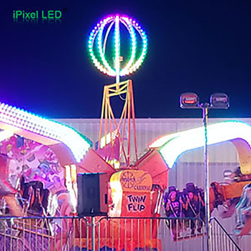 Our American client put new lights on the carnival rides. Useing 4350pcs the (P389V24) 38 mm pixel lights with waterproof plugs.