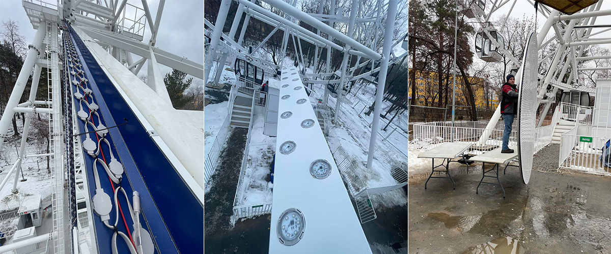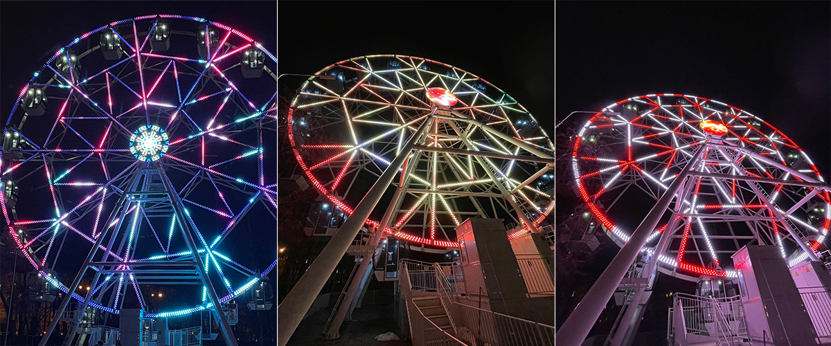 This is a very big ferris wheel in Russian.There are two different led pixel lights used on this ferris wheel. On these arms are the big led pixels, and the middle disc is the small one. In addition to the difference in size, these two led pixels are also different in the way of installation. led pixel 1:100PCS/string, the middle with 100mm wire connected, each string with a pair of male/female waterproof connector; Moreover, the pixel light is fixed on the aluminum profile and does not require additional clip for installation. led pixel 2: Each led pixel has a pair of male and female connector separately, you need connect each pixel light through the male/female connector; And this led pixel needs to go through the front hole, and then each led pixel is secured with a clip. Since this project is in Russia, all the products need to be used in low temperatures and outdoor environments. The power supply is Mean Well waterproof HLG series; Each LED pixel with glue covered; The Controller is also putted in a waterproof box; Connector and extension cables are also waterproof for outdoor use. If you have an LED project or idea, please feel free to contact us.