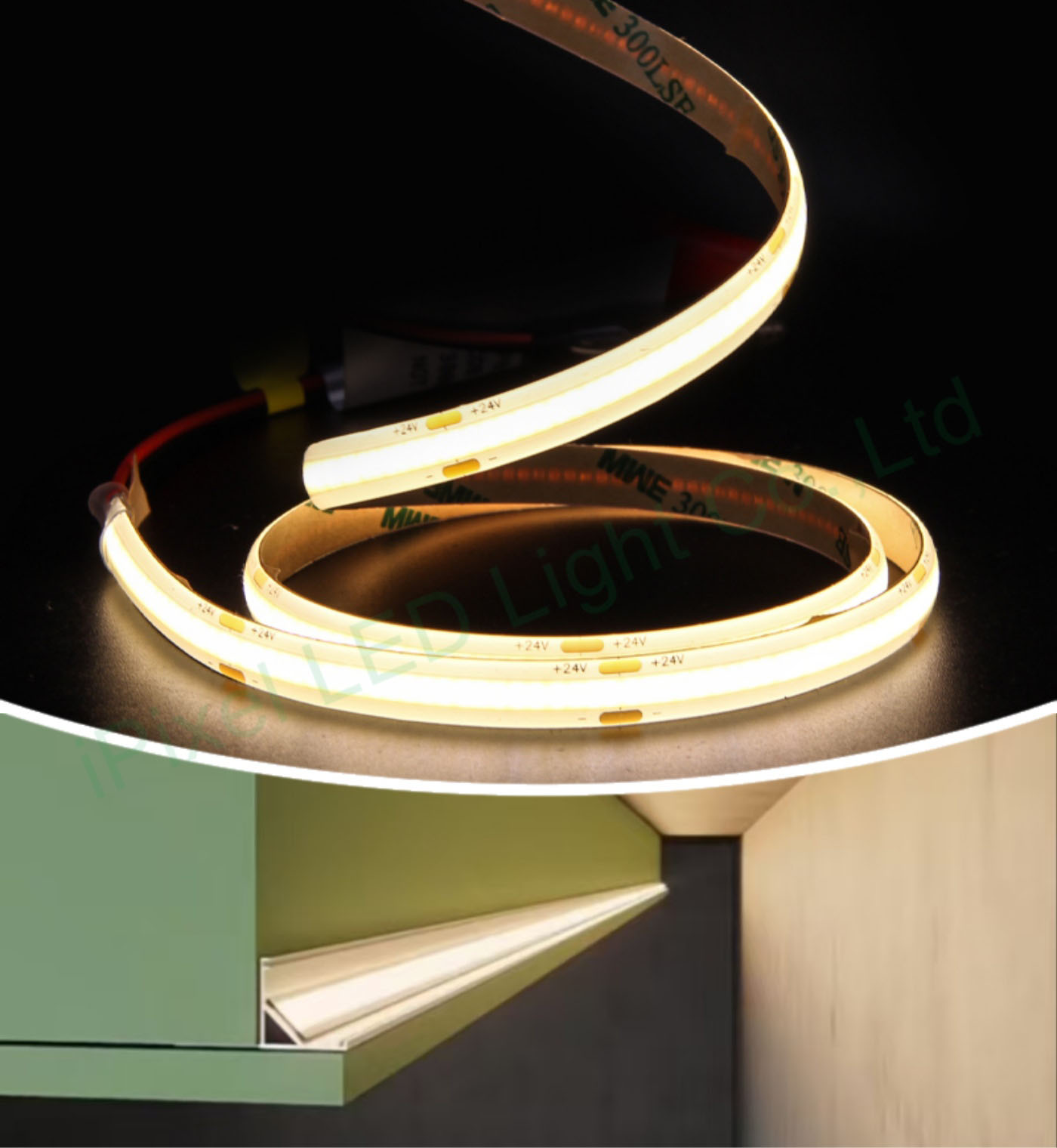 Use a single color flex COB strip and corner aluminium profile kit, |