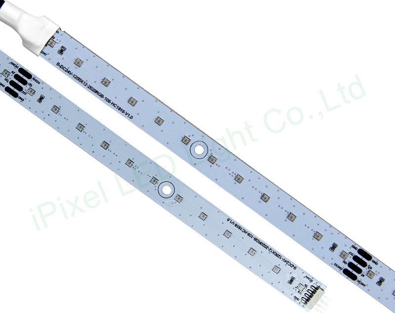This is a customized addressable LED rigid bar To know more details about this product, please see the specs as below: Internal Code:10204-0060-00Part Number:B012108EC3SC4 LED chip: 2020 RGB IC: HC1816 Voltage: DC24V Power: 13W/M Leds: 108LEDs/M Dimension: 3600*12mm PCB color: white cables Length: 500mm
