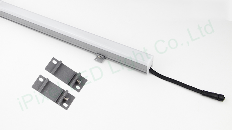 Item No.: B030060CC4DS(10801-0041-00) This is customized tube, with two special brackects. LED type: 60pcs SMD5050 RGBW LEDs IC type: UCS512C0, 10Pixels/M Tube size: 980x30x45mm Thickness of profile: up to 2mm Black cable: 200mm