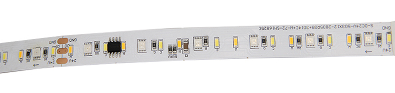 This product is customized by our Germany customer. before we have DC48V RGB+WW flex led strip, now we develop DC24V digital RGB+WW led strip, Part Number: S012144BC5SD8/10105-0135 1. This led strip with 48pcs 2835 RGB + 48pcs 3014 warm white+48led 3014 white LED chips, 144LEDs/m. 2. This is a SPI , IC chip is SM16825 3. The input voltage is DC24V, and 18LEDs/group. 4. Flexible PCB, the FPCB color is white. 5. The PCB width is 12mm 6. The length is standard 5M/roll, length can be customized. 7. non-waterproof IP20