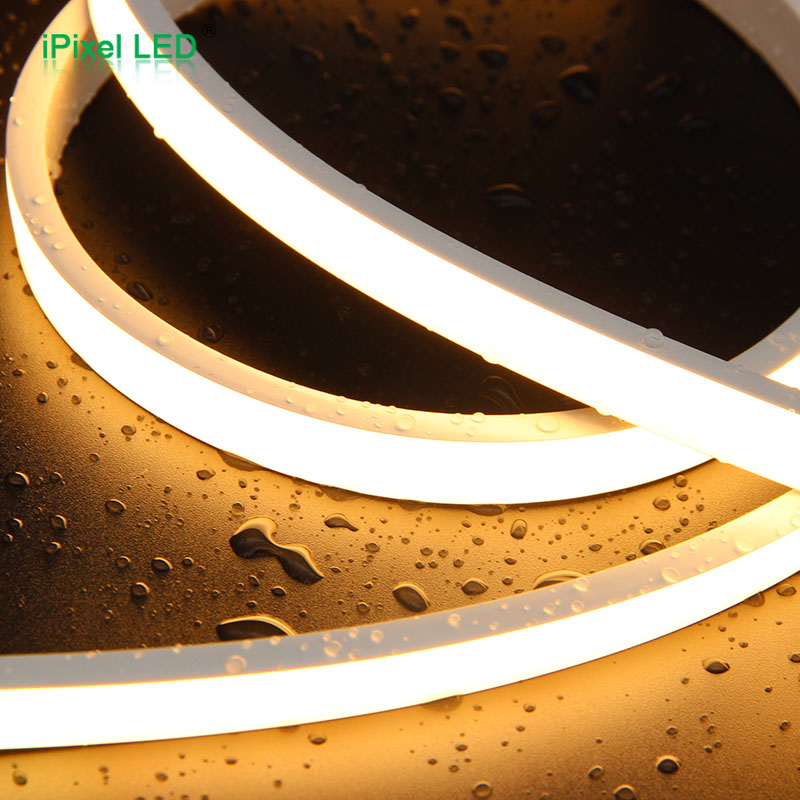 This neon strip is top view with a translucent silicone rubber as a diffuser, light uniform and no spot.