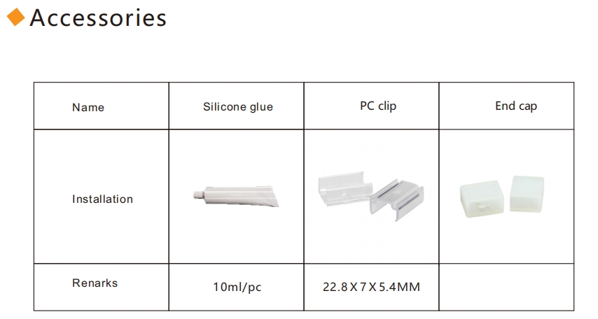 Each roll includes 10pcs alu clips for installation (2pcs/m)