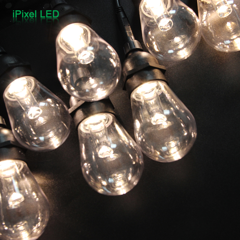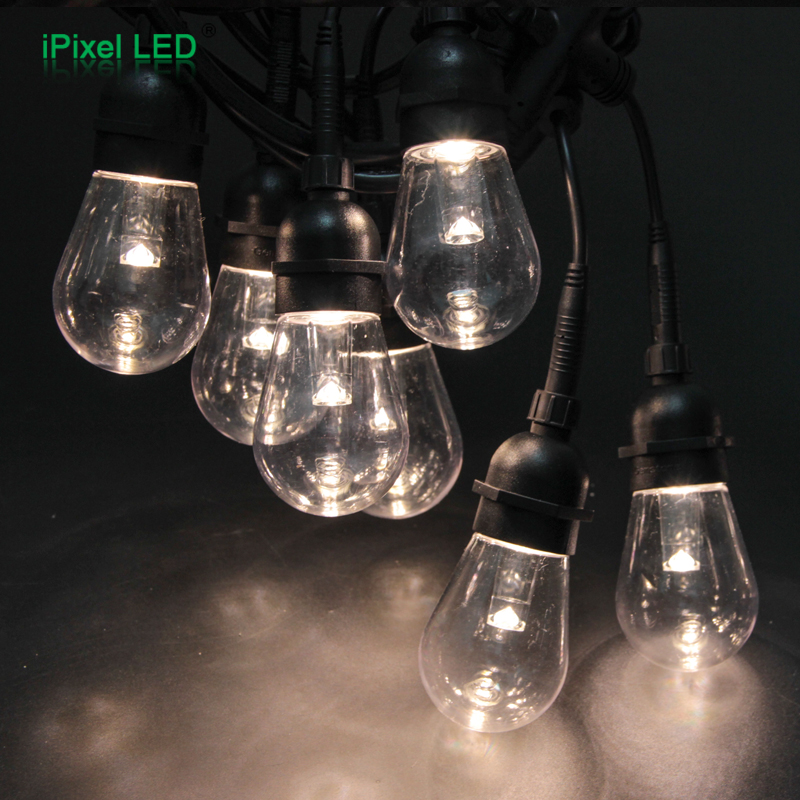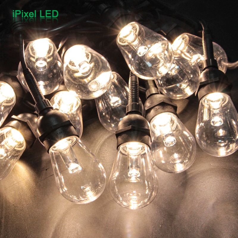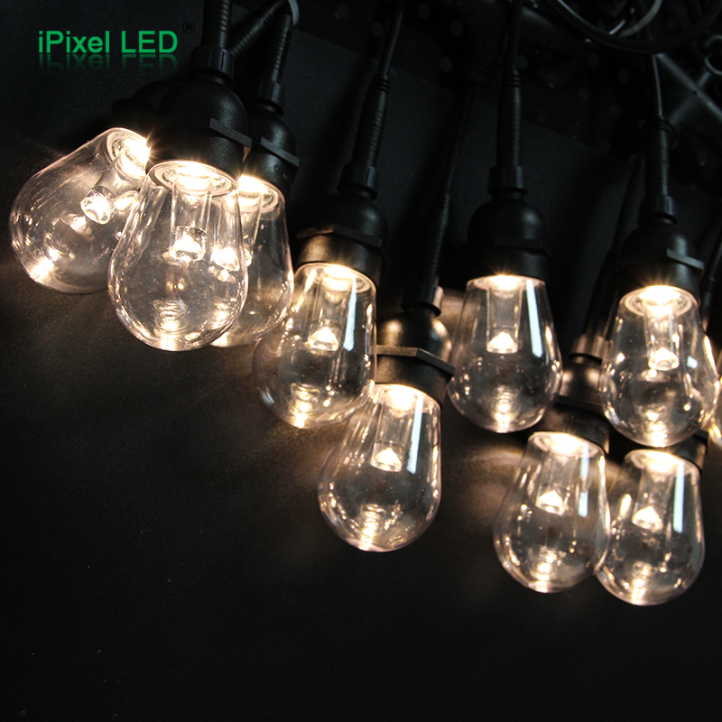 - This is static color LED patio lamp string consist by 15 lamps per string.