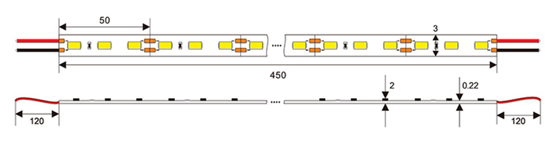 There are cut-lines every 50MM (3 LEDs each).