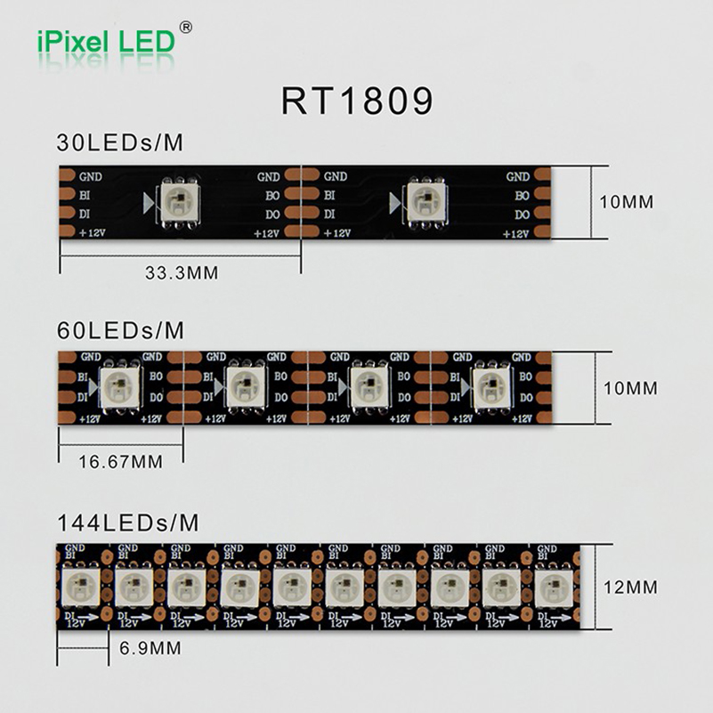 The Flex is 30/60/144 Pixel/LED per meter ,and 5 m in a roll we provide black and white color board.